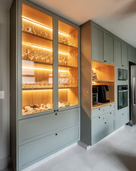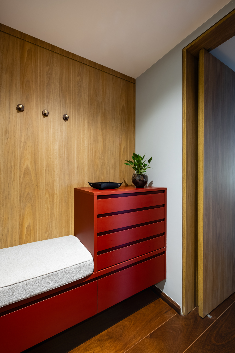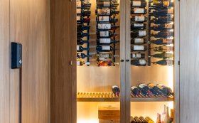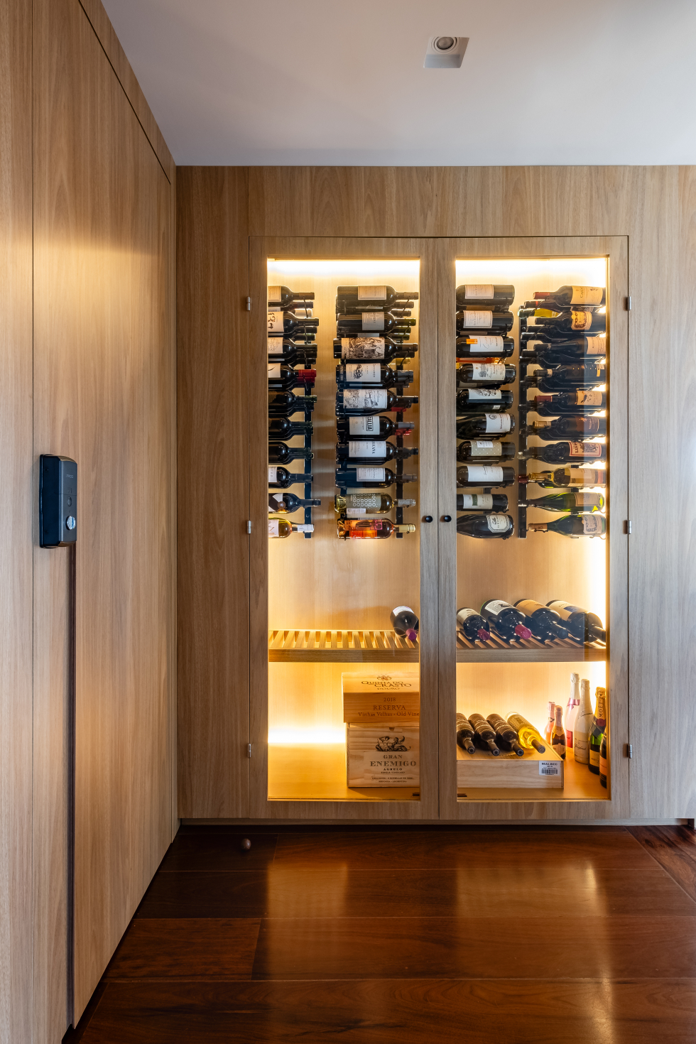 Um dos grandes destaques da reforma foi a criação de uma adega do zero — um espaço exclusivo, planejado para abrigar e valorizar a coleção de vinhos dos moradores, com climatização, iluminação e marcenaria personalizada. Cada detalhe deste projeto foi pensado para refletir o estilo de vida dos clientes e trazer mais conforto, praticidade e beleza. Fotos: Nathalie Artaxo